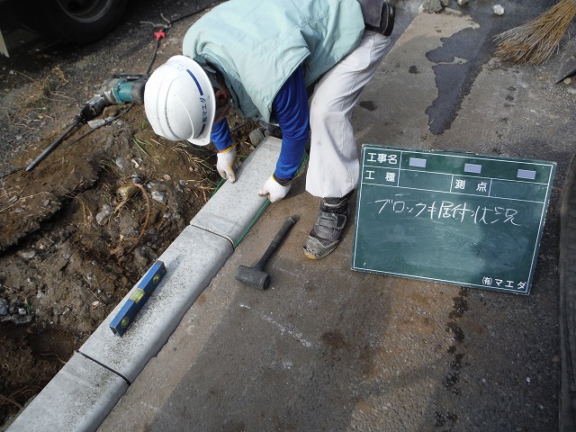 歩車道ブロックを切下げ用の低いブロックに変更します。