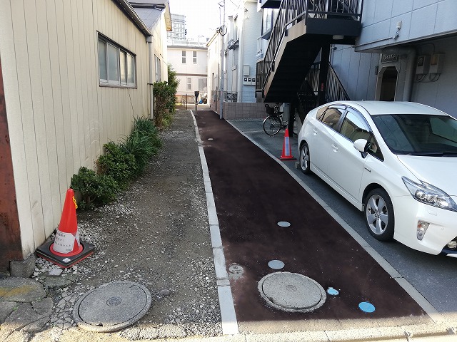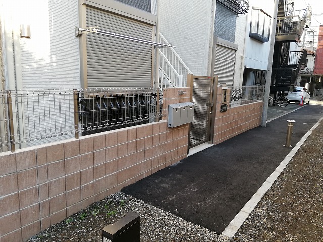 化粧ブロックで囲いを設置し通路の舗装を施工しました。